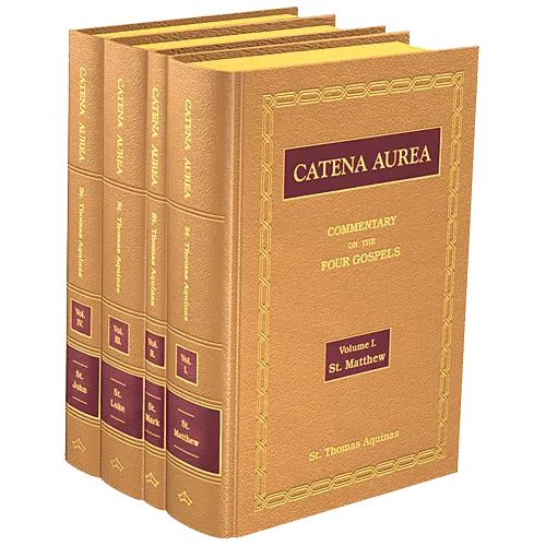 St. Thomas Aquinas’ work demonstrates intimate acquaintance with the Church Fathers and is an excellent complement to the more recent attempts to understand the inner meaning of the Sacred Scriptures. For each of the four Gospel writers, the Catena Aurea starts by indicating the verses to be analyzed, then phrase-by-phrase, provides the early Fathers’ insights into the passage.
