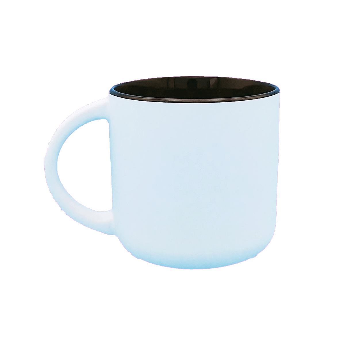 - Holds 12 fl oz, white matte ceramic exterior, with glossy black interior