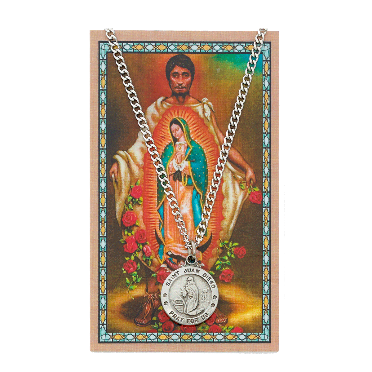 Sold individually and includes a prayer card with an image of the saint.