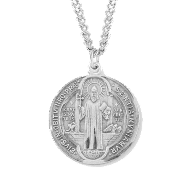 - Saint Benedict round double sided medal-pendant with a 3- or 4-cm diameter.